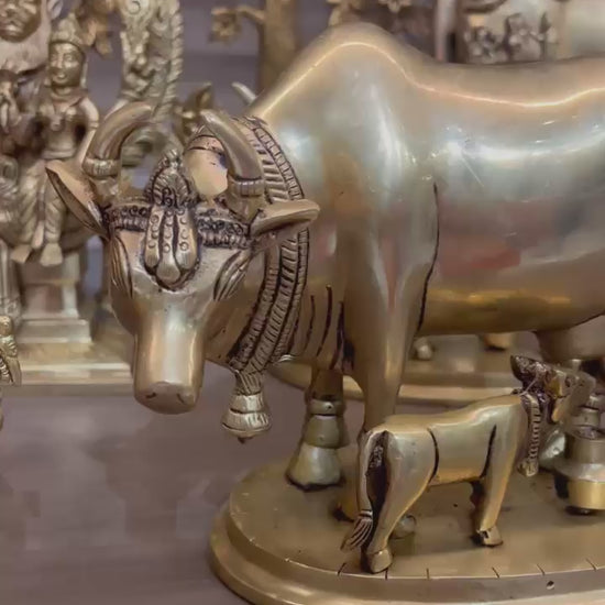 Bring home divine blessings, love, and prosperity with this exquisite Brass Kamadhenu Cow and Calf Idol, a symbol of purity, abundance, and nurturing energy. Known as Surabhi or the wish-fulfilling cow, Kamadhenu is believed to embody all gods and goddesses, making this brass cow statue a sacred addition to your home temple, puja room, or vastu decor.