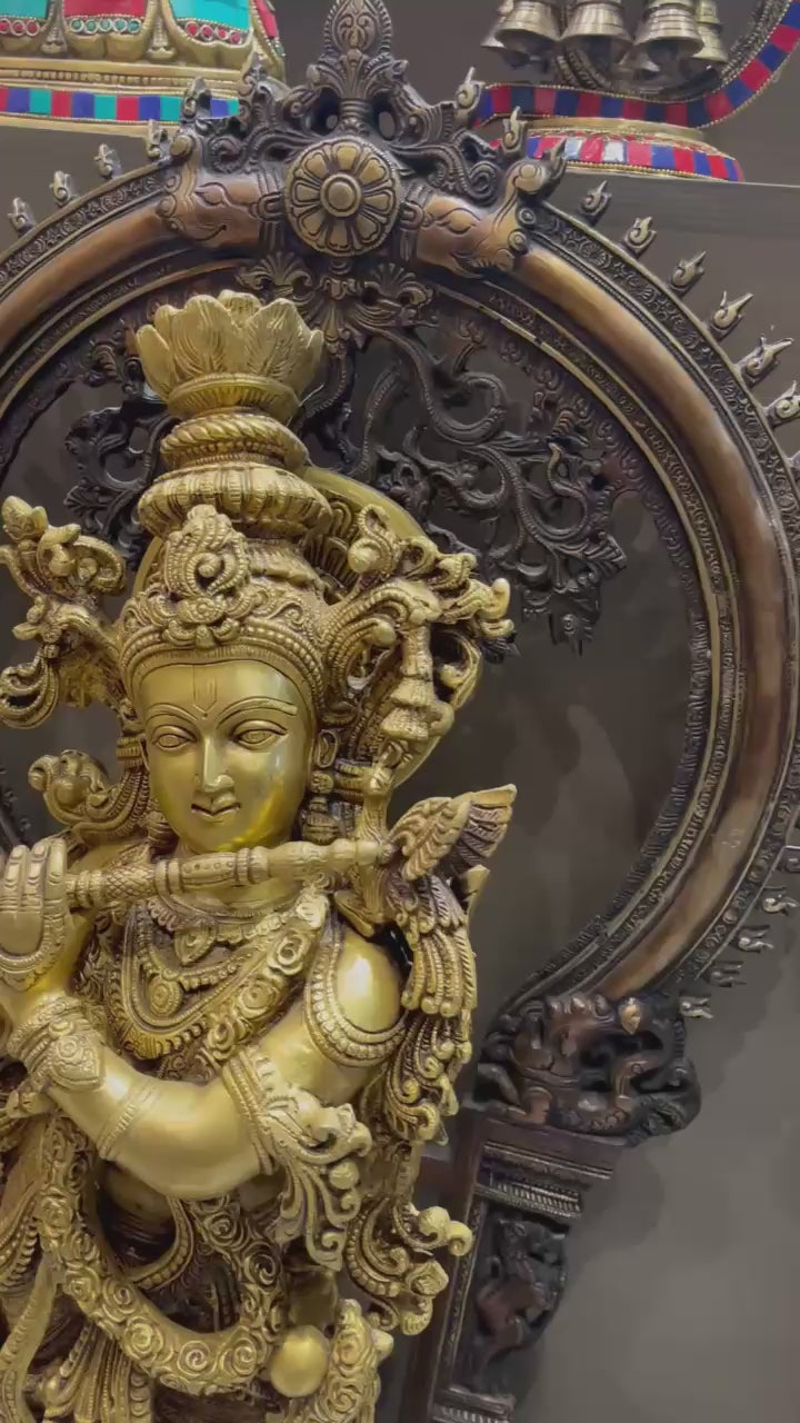 Brass Lord Krishna Idol | Antique Finish Flute-Playing Venugopala Statue for Home Temple & Décor (32 Inches)