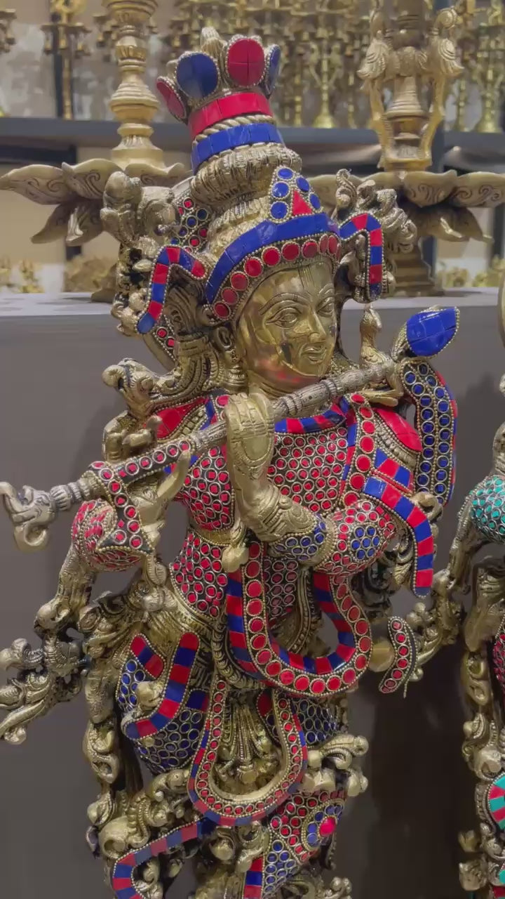 Bring home love, peace, and positive energy with this beautiful Brass Radha Krishna Idol Pair, designed with colourful stone inlay work and detailed handcrafting. Made from pure brass, these 30-inch statues show Radha and Krishna in their graceful poses, making them perfect for your home temple, living room, or gifting.